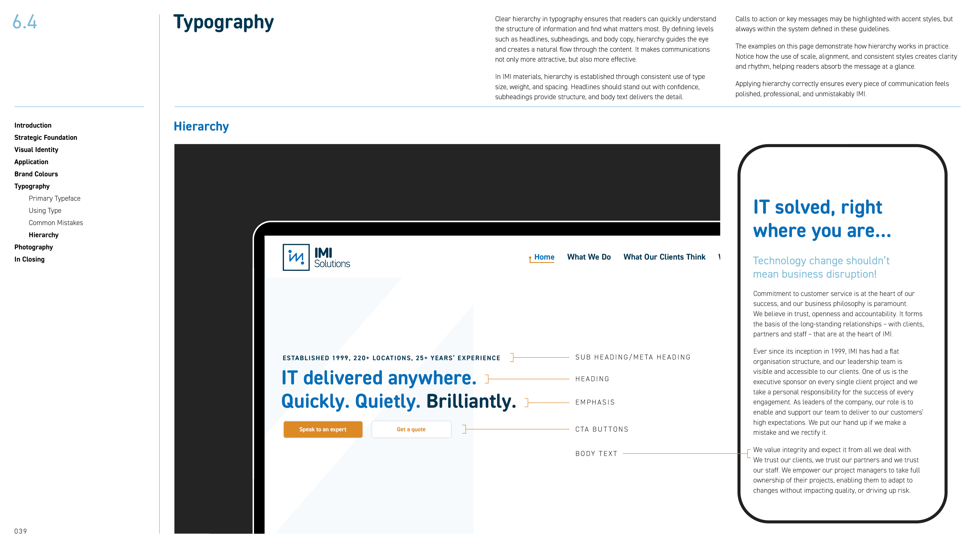 IMI Solutions is an IT infrastructure specialist delivering tailored, high-integrity solutions designed to power business growth operating out of Sydney and Melbourne. While the business had undergone a "full renovation" in its internal capabilities, shifting from simple execution to high-level advisory, its external presence remained stuck in the past. We were engaged to redefine their strategic foundation and visual identity to ensure their "front door" accurately reflected the sophisticated, solution-oriented partner they had become.